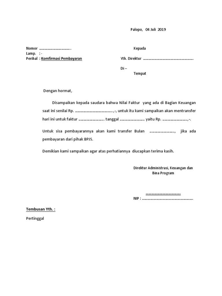 Surat pengiriman pembayaran dibuat oleh pembeli seelah menerima barang yang dipesan. Dengan hormat, mohon konfirmasi pembayaran atas pokok dan bunga wesel tertanggal 30 april 2011 senilai rp 140.938.000,00. Demikian kami sampaikan agar atas perhatiannya diucapkan terima kasih. Maksudnya adalah kawan kledo harus terus mengirimkan surat penagihan kepada pelanggan hingga pelanggan tersebut melunasi pembayaran. Kumpulan gambar tentang surat konfirmasi pembayaran, klik untuk melihat koleksi gambar lain di kibrispdr.org. Ada beberapa jenis surat konfirmasi perusahaan, antara lain: Contoh surat surat konfirmasi pembayaran di terimanya donasi, dari bapak sobari hanya nama karangan westart, diantaranya untuk membalas . Masuk ke menu layanan legalisir => konfirmasi pembayaran . Informasi yg ada didalam surat konfirmasi pesanan adalah salah satuya harga total pemesanan, cara pembayaran, dan detail pengiriman. Pengertian surat konfirmasi pesanan adalah surat yang bersisi tentang data pesanan yang terdiri atas nama barang, jumlah, harga, dan syarat jual beli lainnya . Konfirmasi pembayaran dilakukan setelah anda melakukan pembayaran atas order legalisir. Pembayaran dilakukan secara tunai, dengan waktu pembayaran . Surat konfirmasi pesanan adalah surat yang dibaut oleh penjual yang.