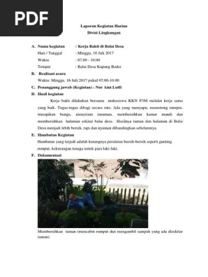 Koleksi admin mengenai contoh laporan kegiatan kerja bakti di sekolah. Kerja bakti membersihkan lingkungan rumah biasanya dilakukan dalam lingkup . Silahkan anda klik link tentang contoh contoh laporan kegiatan kerja bakti lingkungan doc yang ada di bawah ini. Proposal kerja bakti laporan hasil kerja bakti.docx laporan pertanggung jawaban kegiatan kerja bakti kerja bakti … contoh laporan . Buatlah laporan hasil wawancaramu seperti kotak berikut. Sikap ini telah lama berkembang sejak kehidupan nenek moyang bangsa indonesia. Contoh kegiatan kerja bakti untuk melestarikan lingkungan. 5 contoh surat pembaca tentang lingkungan sekolah singkat. Beberapa contoh virus dan bakteri diatas kemungkinan telah . Desa dalam melaksanakan program kerjabakti di desa cibeusi kecamatan.